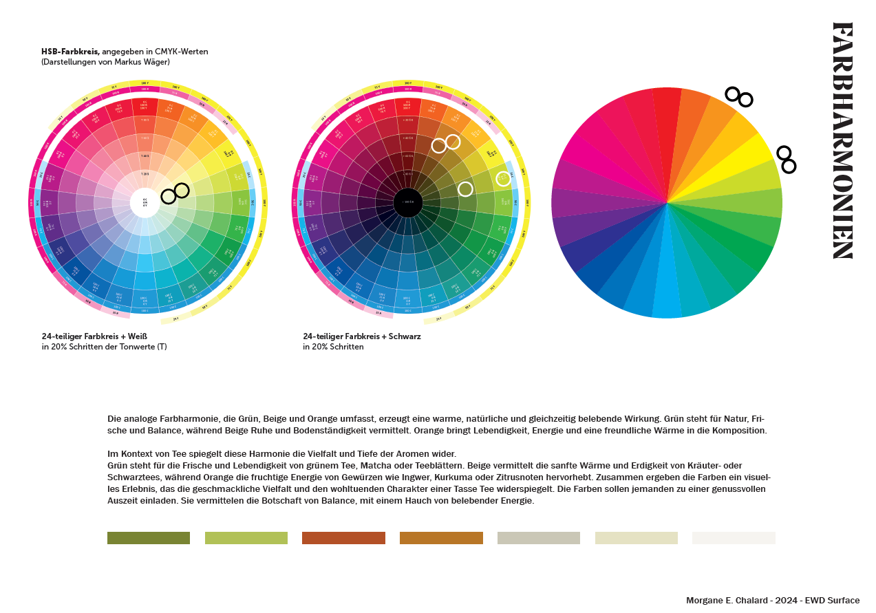 For the color scheme, I chose a warm mix of red and orange, representing the richness of black tea and fruit tea. The secondary colors—green and beige—reflect the refreshing qualities and natural essence of green tea, herbal tea, and white tea. These colors symbolize not only the warmth of tea but also its freshness and sustainability.