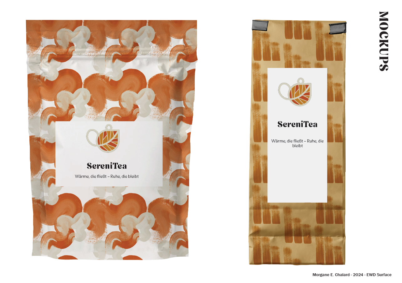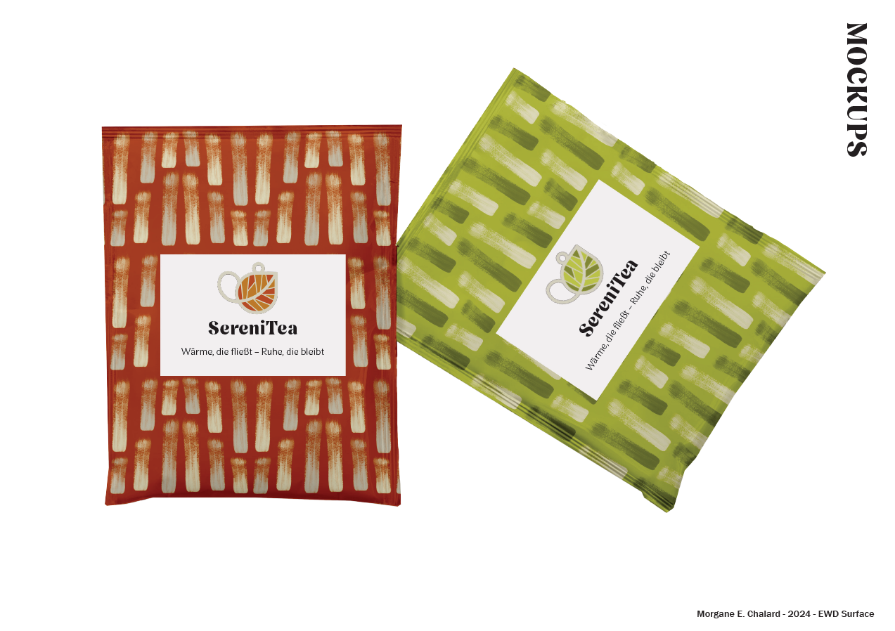 The first collection is called Lines, focusing on the use of lines in varying sizes to create different patterns. This collection emphasizes structure and simplicity, with the lines representing the clean, straightforward essence of tea. The second collection is called Swirls, which highlights the more organic and flowy aspects of tea. The patterns in this collection are warm and soft, symbolizing the natural flow and comforting qualities of tea.